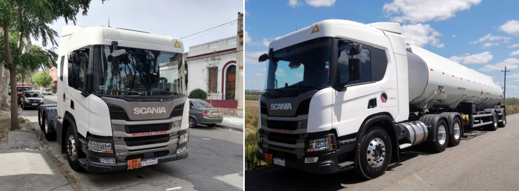 Nuestros tractores son marca Scania y Volvo, dos de esos tractores poseen bombas para descarga de productos negros.